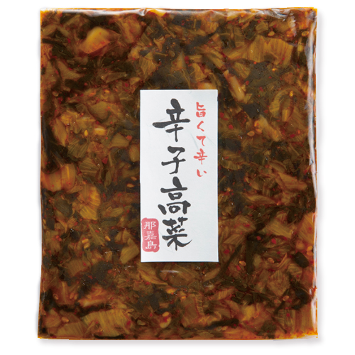 九州の代表的なお漬物「高菜漬」をこだわりラー油※と混ぜてピリッと辛く旨みたっぷりに仕上げました。シャキシャキの食感も楽しい味わいです。